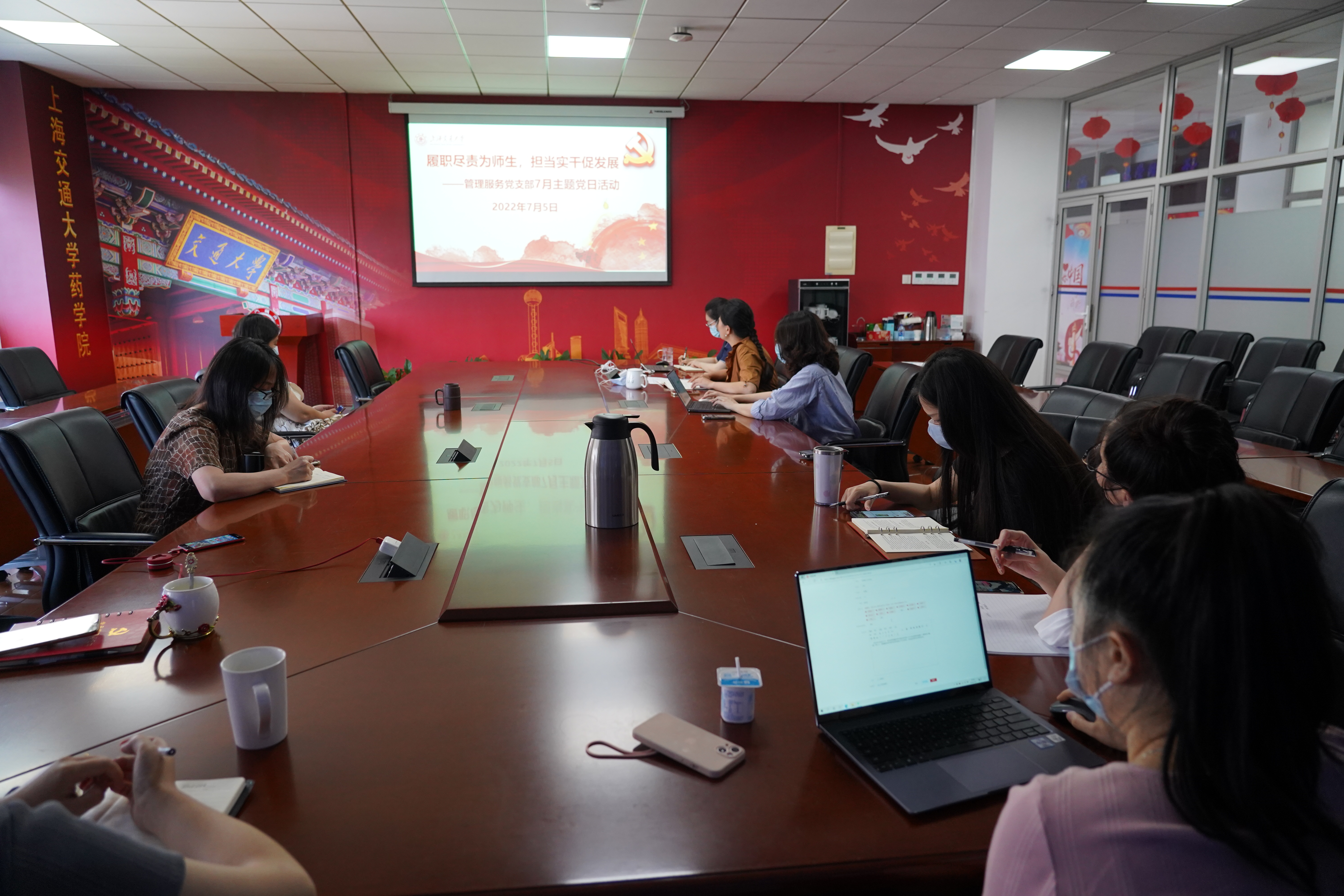 2022年7月5日下午,海角网 管理服务党支部开展了“履职尽责为师生,担当实干促发展”主题党日活动。院党委书记刘建新以普通党员身份参加了本次活动,活动由支部书记李伟主持。