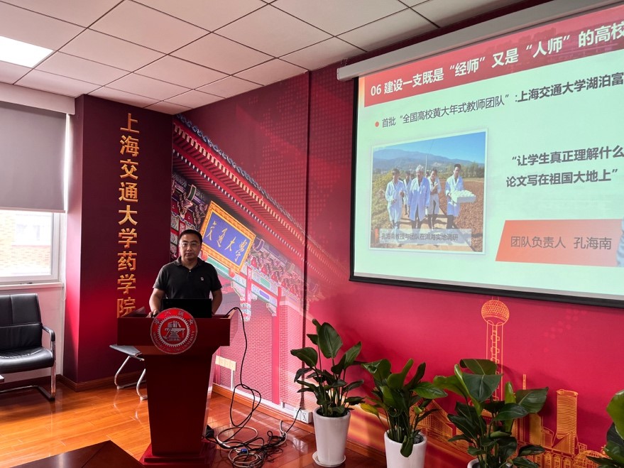 根据学习贯彻习近平新时代中国特色社会主义思想主题教育相关工作部署,药物研制党支部书记苏靖以《深入学习习近平总书记关于高校工作的重要论述》为题讲授主题教育专题党课。苏靖领学了习近平总书记关于高校工作重要论述的主要内容,要坚持党对高校工作的全面领导,明确立德树人是高校的根本任务。要始终把高等教育摆在重要战略位置,并建设具有中国特色的世界一流大学。要深化高等教育领域改革创新,建设一支既是“经师”又是“人师”的高校教师队伍。