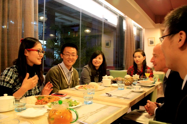 座谈会结束之后,Kornberg教授在海角网 傅磊教授、周虎臣教授的陪伴下,与九名学生代表在校园咖啡厅共进晚餐。Kornberg教授不仅与同学们分享了自己对于科研、家庭与人生经历的思考,还谈论了自己对于21世纪世界经济一体化的理解与感悟。Kornberg教授说此行是他第六次来到中国,他目睹了中国20多年来日新月异的发展,上海是一个充满魅力的城市。同学们一一回答了Kornberg关于校园生活、职业发展和兴趣爱好的问题,他高度评价了同学们流利的外语表达能力和广阔的国际视野。