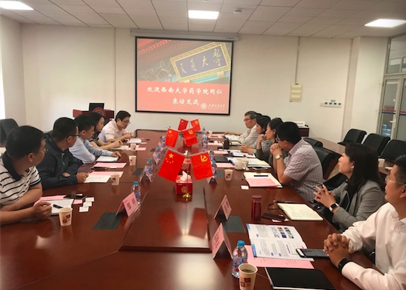 会上双方围绕药学一流学科建设、全英文教学与国际化、课题组运行与研究生招生名额分配、二级单位绩效管理等方面展开热烈讨论。西南大学海角网 院长胡昌华首先对交大海角网 的快速发展及成果表示充分关注与肯定,副院长陈敏及院长助理徐峰分别就其学院建设发展、人才培养及国际化办学中存在的问题提出探讨。我院党委书记刘建新及学院各分管领导就学科建设、研究生培养质量管理、教师队伍管理及绩效考核机制、国际交流与合作、学生就业概况等方面进行了经验分享和近期工作情况介绍。
