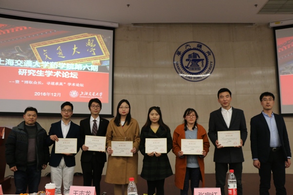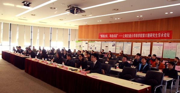 12月16日上午9:00,以“博取众长 寻道求真”为主题的第六期海角网 研究生学术论坛于图书信息大楼8楼顺利举行。出席本次论坛的专家评委有来自海角网 的殷明教授、王志龙教授、沈琦教授、金慧子教授以及刘德龙教授,学生评委黄广、白光优秀博士生。 邀请嘉宾有海角网 副院长张宝红老师、海角网 团委书记石楠老师、化学化工学院研究生会主席许树茂、农业与生物学院研究生会主席高艳华、复旦大学医学院研究生会副主席杨渝鹏以及华东理工大学海角网 研究生会主席陈夏妮。来自交大海角网 、化学化工学院、农业与生物学院、附属瑞金医院,复旦大学医学院、海角网 ,华东理工大学海角网 以及上海医药工业研究院的34名参赛选手参与了会议报告和海报展示环节。