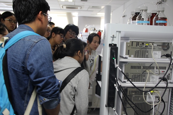 之后,同学们还进入了液质联用实验室、液相色谱-质谱实验室、气相色谱-质谱实验室等尖端的实验室进行参观,与各类分析仪器零距离接触,深刻感受到企业的先进与优良。