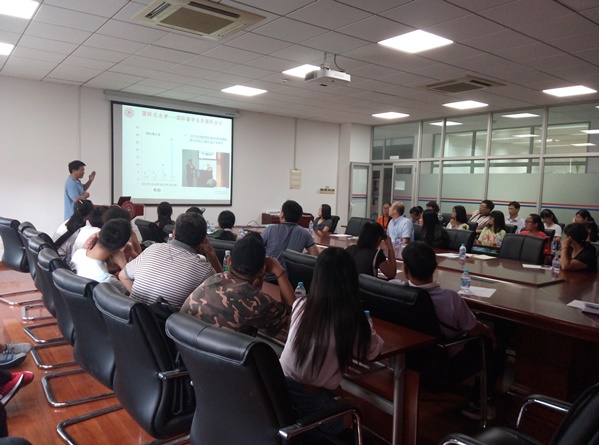 晚上,学院领导分两个场地与学生和家长进行交流,刘明柱书记在生命与环境交叉平台向大平台学生的家长和学生介绍学院情况,刘明柱书记的对学院的精彩介绍赢得了现场家长和学生们的热烈掌声。张宝红副院长和康健副书记则在学院的树华多功能厅组织了新生入学教育暨班级凝聚力建设活动。张宝红副院长把学院的基本情况和大家比较关心的师生互选情况和大家做了沟通,图书馆的三位老师把如何使用好图书馆,充分利用好图书馆的资源向同学们做了介绍,康健老师用体验式教育的方式对各班级同学进行了破冰,通过几个小游戏很快的拉近了同学们之间的距离,让大家迅速相互认识熟悉起来,不知不觉间增强了同学们的班级概念和团队凝聚力。