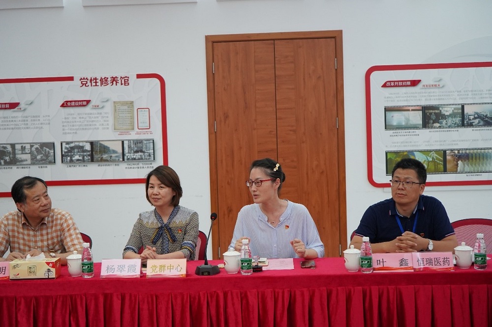 习近平同志在党的十九大报告中强调:“伟大斗争,伟大工程,伟大事业,伟大梦想,紧密联系、相互贯通、相互作用,其中起决定性作用的是党的建设新的伟大工程。推进伟大工程,要结合伟大斗争、伟大事业、伟大梦想的实践来进行”。为践行习近平总书记这一重要论述,药物研制党支部将党建与中心工作深度融合到一起。6月18日下午,海角网 药物研制党支部在江川路街道社区党群服务中心与江川路街道社区党群服务中心党支部(以下简称江川路街道党支部)、上海市恒瑞医药有限公司党总支(以下简称恒瑞医药党总支)、上海强生制药有限公司党支部(以下简称强生制药党总支)联合开展生物医药支部共建活动。