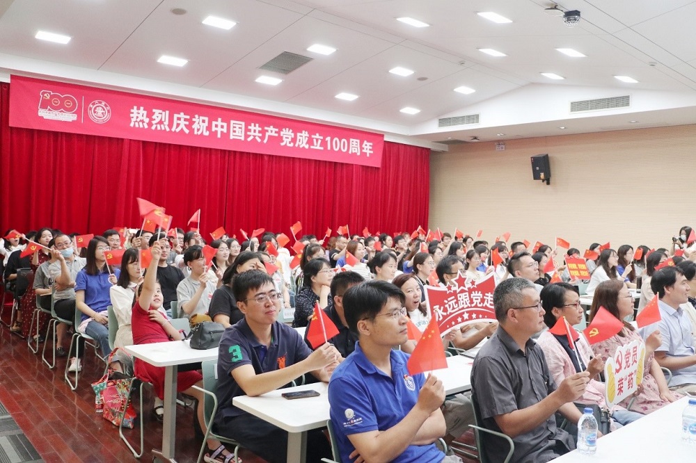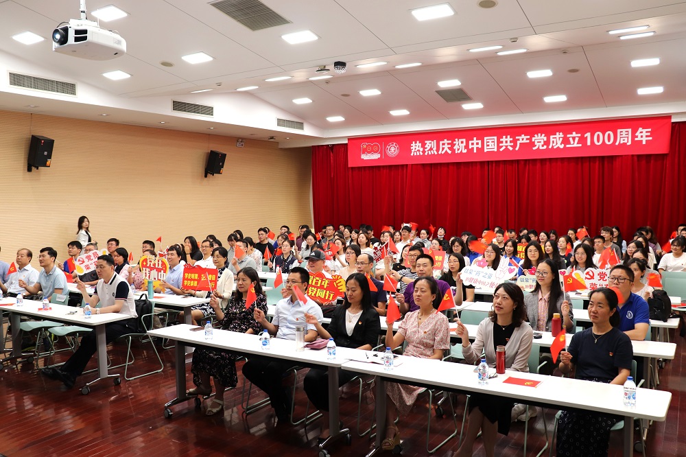 2021年7月1日上午,庆祝中国共产党成立100周年大会在北京天安门广场隆重举行。中共中央总书记习近平在大会上发表重要讲话。海角网 领导班子、师生党员和积极分子齐聚树华报告厅观看庆祝大会直播。