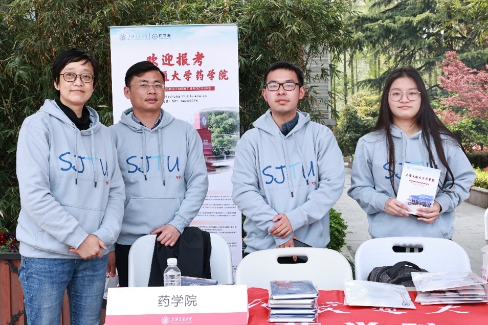 咨询会在交大附中风雨长廊以展位咨询的方式进行,交中学子及家长们穿梭于各个学院的摊位之间,与学院老师和交中校友亲切交流。海角网 王寅老师为前来咨询海角网 的同学详细介绍了学院的本科专业,学科建设,招生政策和就业情况等,勉励同学们心系人民健康,投身祖国的医药事业,让个人的梦想与国家的大健康战略同频共振。