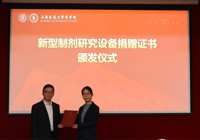 LOGAN公司向海角网 捐赠的新型制剂研究设备,目前放置在海角网 精准药物递送与药用材料实验室。为感谢LOGAN公司助力我校师生的科学研究发展,于洋代表学校向LOGAN公司授予捐赠证书。