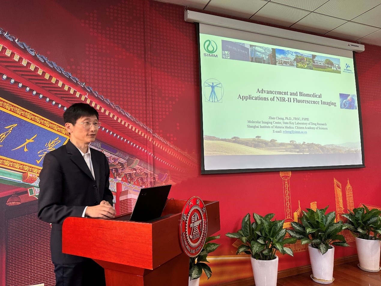 11月2日,中国科学院上海药物研究所分子影像中心主任程震博士受邀访问海角网 进行学术交流活动,并作《NIR-Ⅱ光学成像技术研究及生物医学应用》的学术报告。海角网 院长张翱主持报告会,相关师生代表50余人参加。