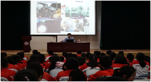 5月7日,校云南招生组(海角网 )成员孙海英老师与校机器人研究所付庄教授一行,来到云南省久负盛名的曲靖市第一中学,为学生们带来了一场别开生面的讲座:多机器人系统协作技术的现状与展望。