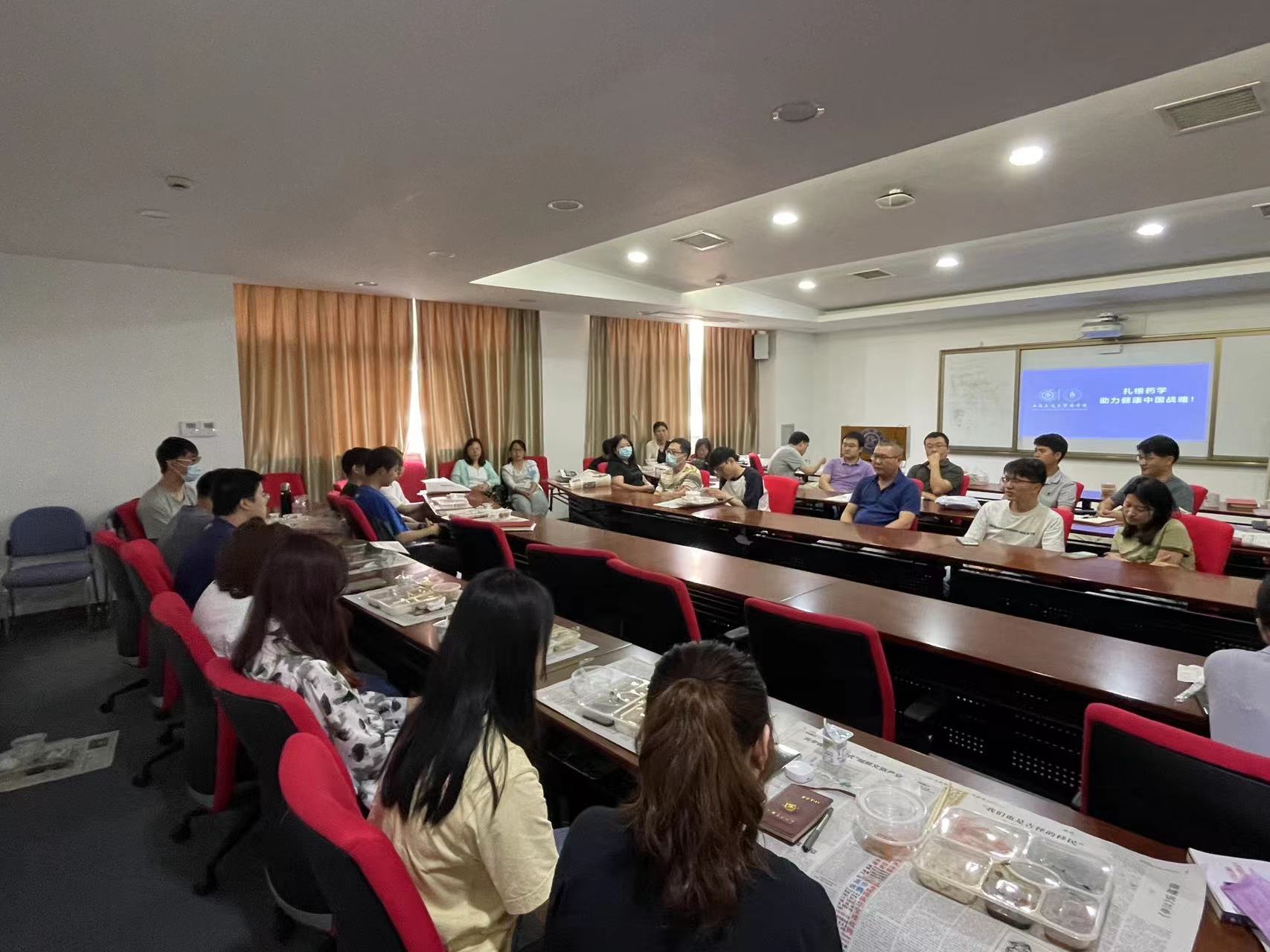 孙占奎为参会的师生党员同志作《学习习近平新时代中国特色社会主义思想,努力深耕药学领域,积极服务健康中国战略》的专题党课,指出海角网 的发展已进入最好的发展时期,勉励药学师生要勤练科研本领,勇攀科研高峰,努力在药学领域建功立业,共同促进学院高质量发展。