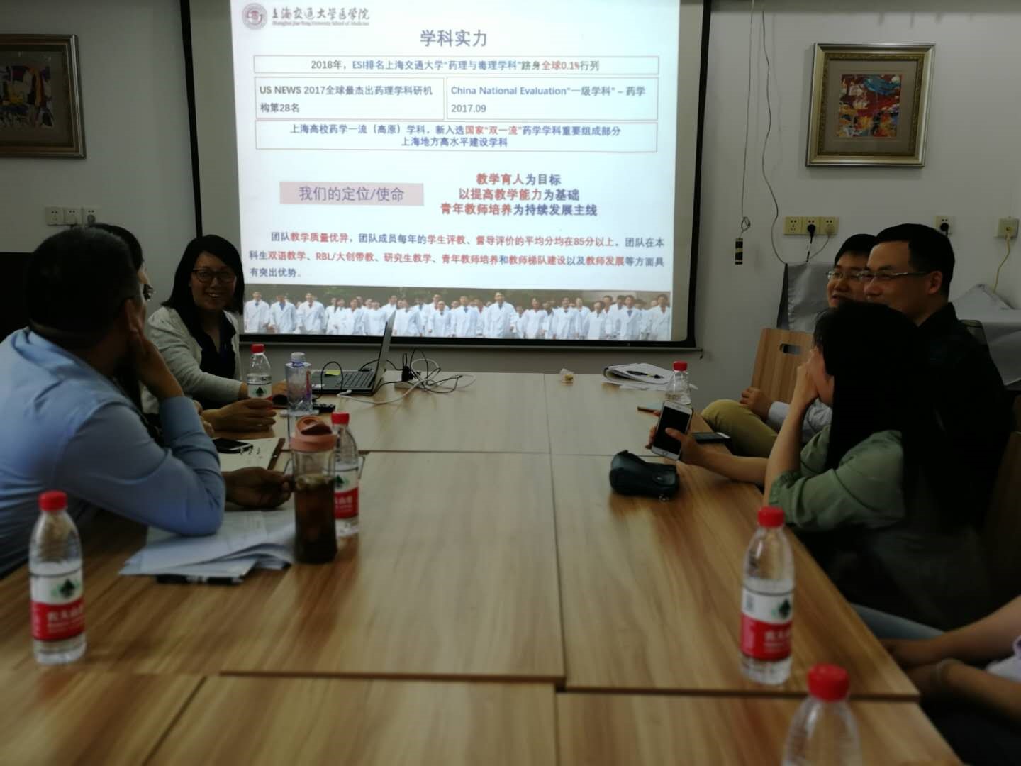 参观结束后进行了座谈,海角网 药物研制支部书记邱明丰研究员、副院长、党委委员和药理与化学生物学支部书记李娟副教授分别介绍了支部的发展、科研、教学等,药理系常务副主任朱亮教授、党委委员对药理与化学生物学科特色进行了总结,副书记兼副院长张宝红副教授对学科评估中基础医学院给予的支持表示感谢并希望继续共同努力“”双一流建设”、共同迎接即将到来的新一轮学科评估。随后,两个支部党员们重点介绍了各自在教学与科研的心得和经验、科研合作兴趣与需求、学生培养等方面进行了进一步的交流。同时,同志们深入探讨如何通过合作来共同推动更高层次上建设海角网 一流药学学科。现场气氛热烈,大家一致表示以后要加强双方的互动,促进优势互补,紧密合作。最后合影留恋,并期待再次开展联合主题党日活动。