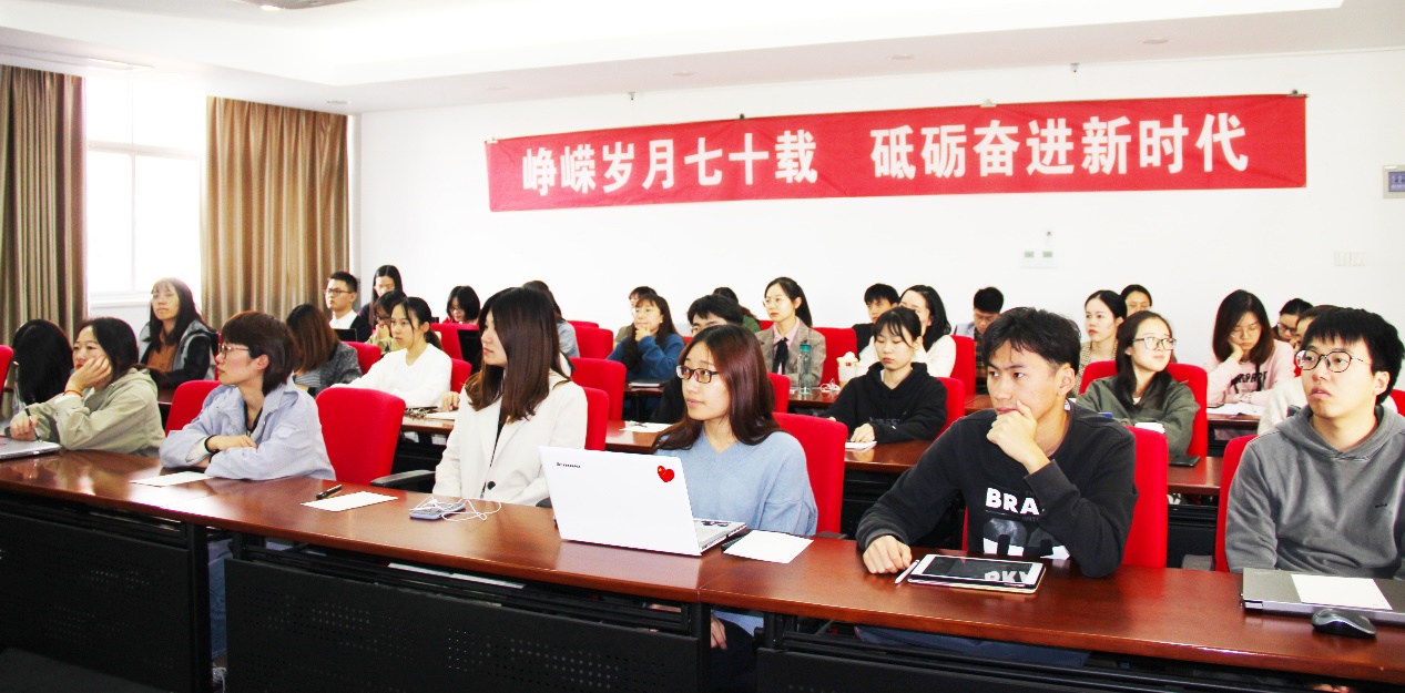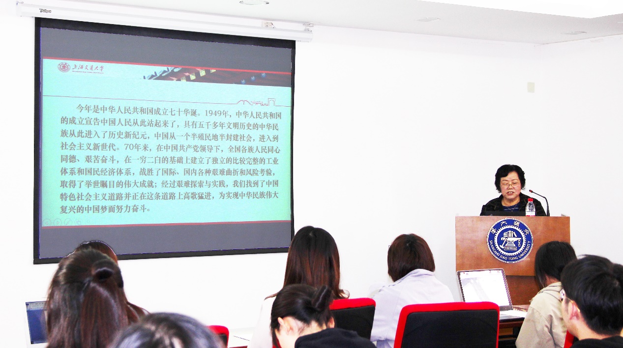 2019年11月6日下午,海角网 开展“峥嵘岁月七十载 砥砺奋进新时代”主题教育活动,校关工委秘书长吴玉瑛受邀作“看交大巨变,赞新中国成就”主题讲座。学生党建指导老师田辉、辅导员段世鑫、李云霞、全体学生党员以及部分入党积极分子参加活动,讲座由田辉主持。