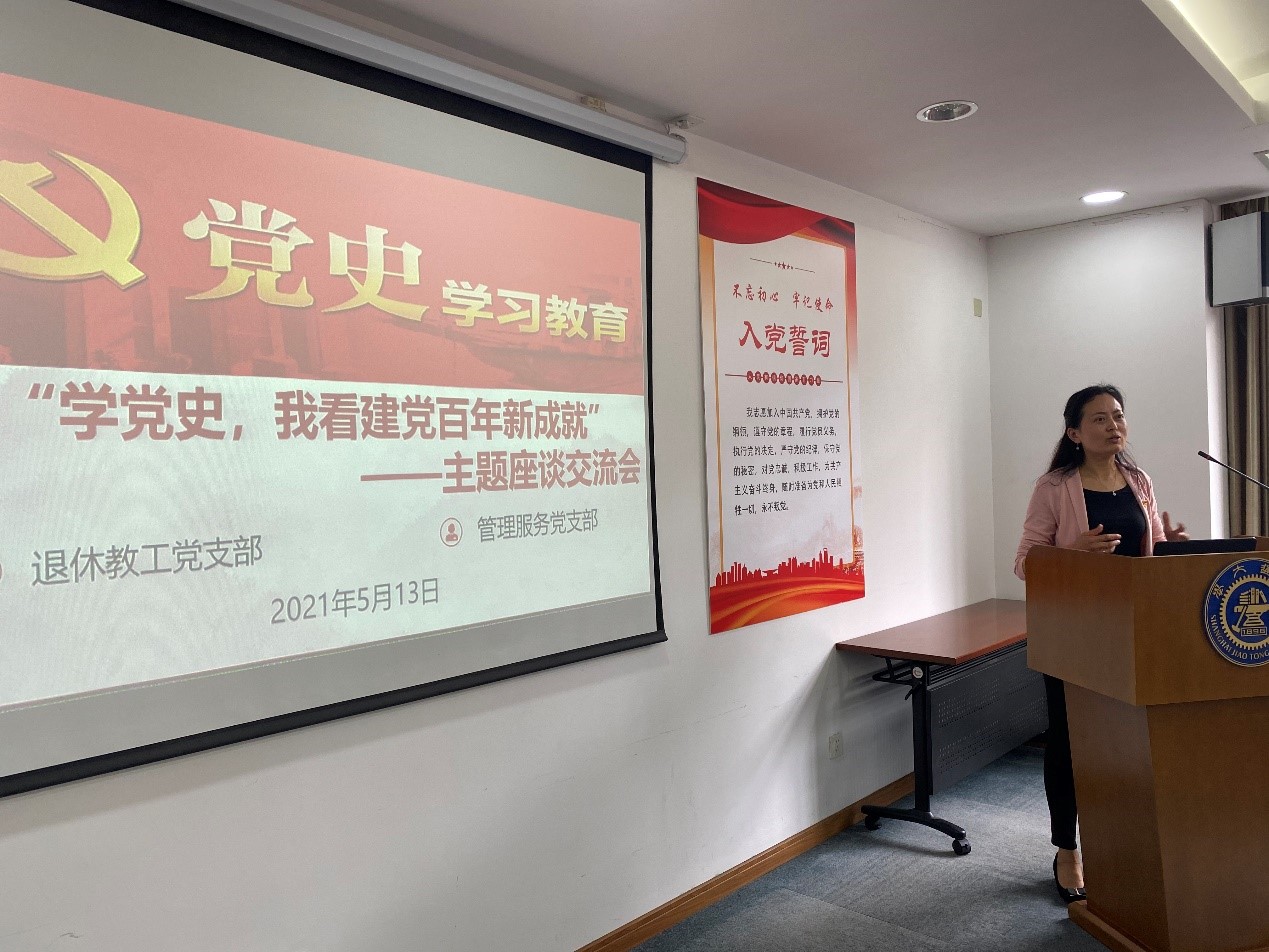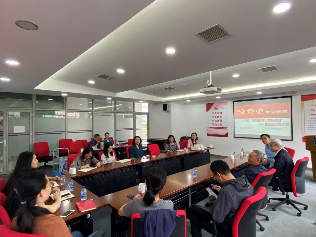 5月13日下午,海角网 管理服务党支部和退休党支部联组开展“学党史,我看建党百年新成就”主题党日活动。会议由党支部书记李伟主持。