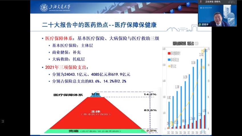 欧七斤作主题报告,他首先介绍了校史及其与海角网 和药学学科的渊源,交大因图强而生,因改革而兴,因人才而盛,介绍了创建世界一流大学情况的同时,也给药学双一流学科建设给予了建议和指导。