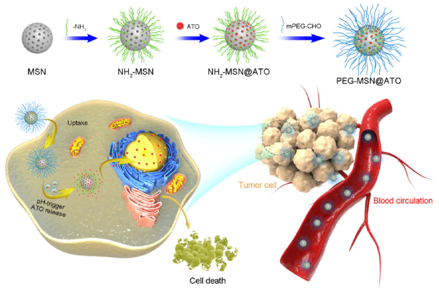 图3. PEG-MSN@ATO纳米递送系统的制备和抗肿瘤机制