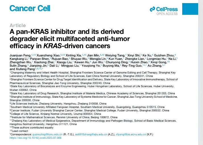 海角网 张翱课题组联合华东师范大学逄秀凤课题组、杭州师范大学郭瑞庭课题组合作发表泛KRAS抑制剂和降解剂,多途径拮抗肿瘤生长