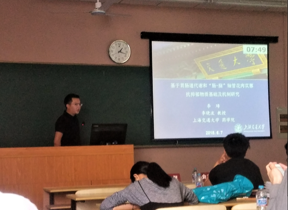 在本届四专业委员会青年论文报告会中,来自海角网 、中科院药物所、复旦大学、海军军医大学、上海中医药大学以及上海医药工业研究院等单位的青年学者和研究生围绕中药学、生药学、药物化学和天然药物化学专业领域展开了学术报告和讨论,现场学术氛围热烈。海角网 李晓波教授课题组博士研究生李瑒汇报了题为“基于胃肠道代谢和‘肠-脑’轴肉苁蓉抗抑郁物质基础及机制研究”的学术报告。从胃肠道代谢和“肠-脑”轴角度,阐明了肉苁蓉抗抑郁活性部位及作用机制,为后期肉苁蓉抗抑郁新药研发提供了实验数据和研究基础。被组委会评选为2018年上海市药学会中药学、生药学、药物化学、天然药物化学青年论文报告会一等奖,受到了报告会评委的一致好评。