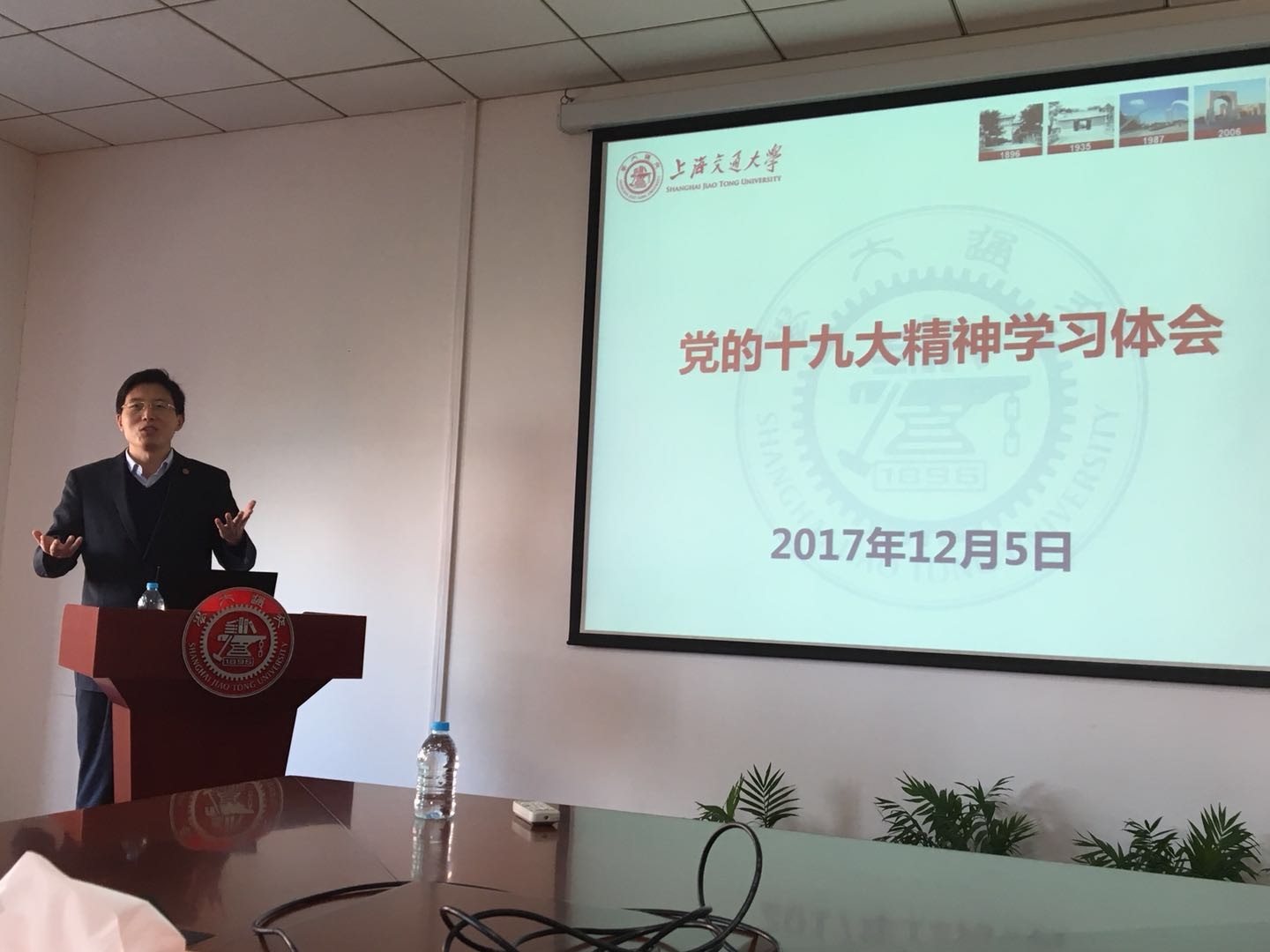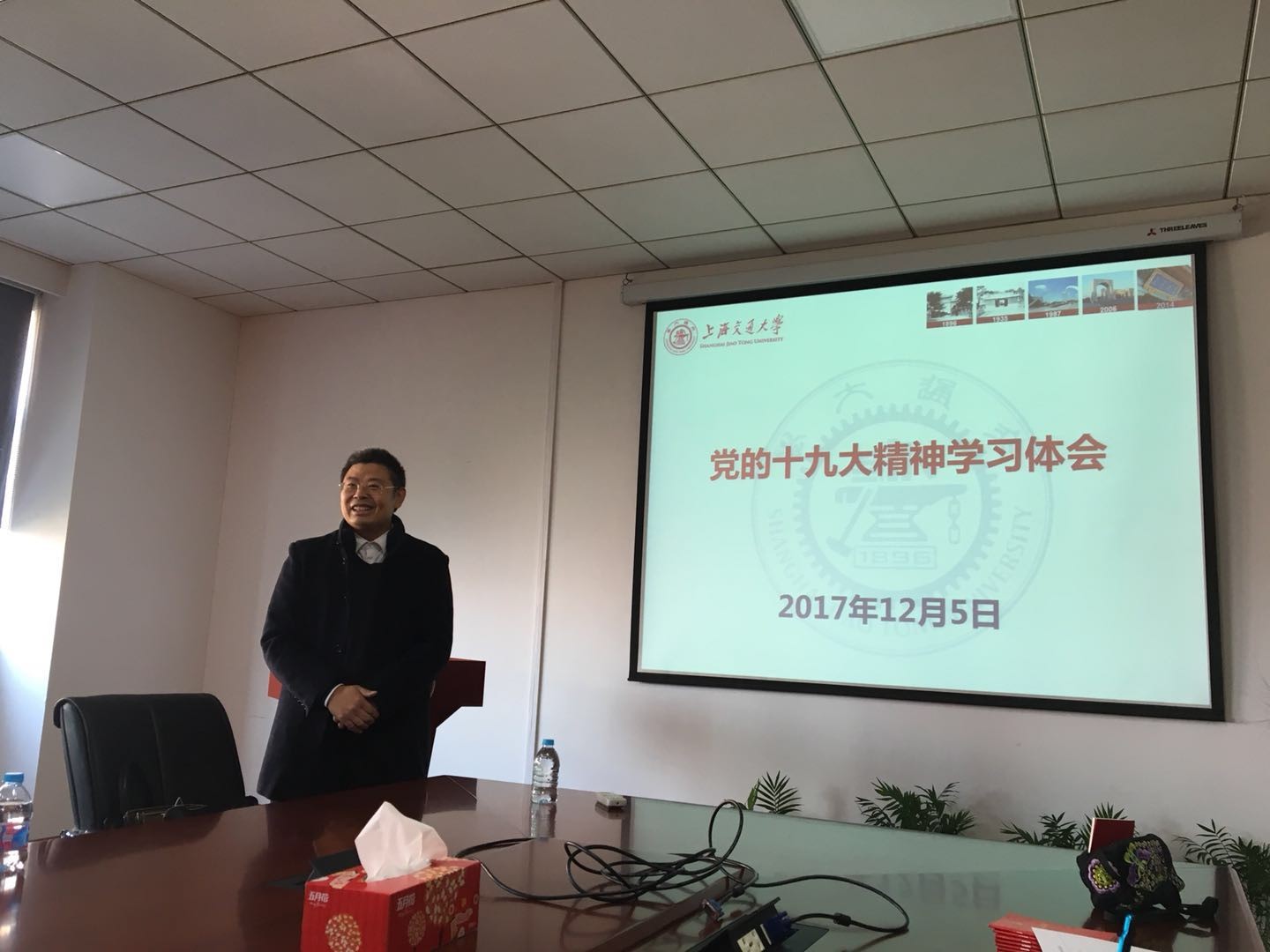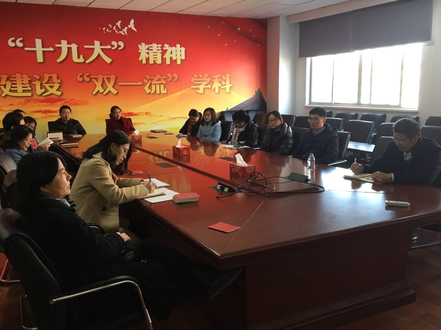 会议由校办副主任赵加强同志为全体党员讲授党课,党课对十九大报告进行了全面的领读。党课结束后,全体党员进行了交流,大家谈了自己对十九大报告的认识和体会。学院党委邱明丰副书记对贯彻落实习总书记讲话精神谈了自己的认识和理解,他表示,十九大报告内涵丰富,报告的每一句话和每一个词都需要我们去深入学习并与实际工作结合起来,特别是从严治党永在路上,我们要牢记“四个意识”、树立“四个自信”,深入学习十九报告,践行社会主义核心价值观,宏扬中华优秀传统文化,提高道德水平,做好人,行好事。我们要把党的号召转化为工作中的实际行动,不忘初心、牢记使命、砥砺前行,在十九大报告精神的指引下,登高望远,积极投入”双一流”学科建设。