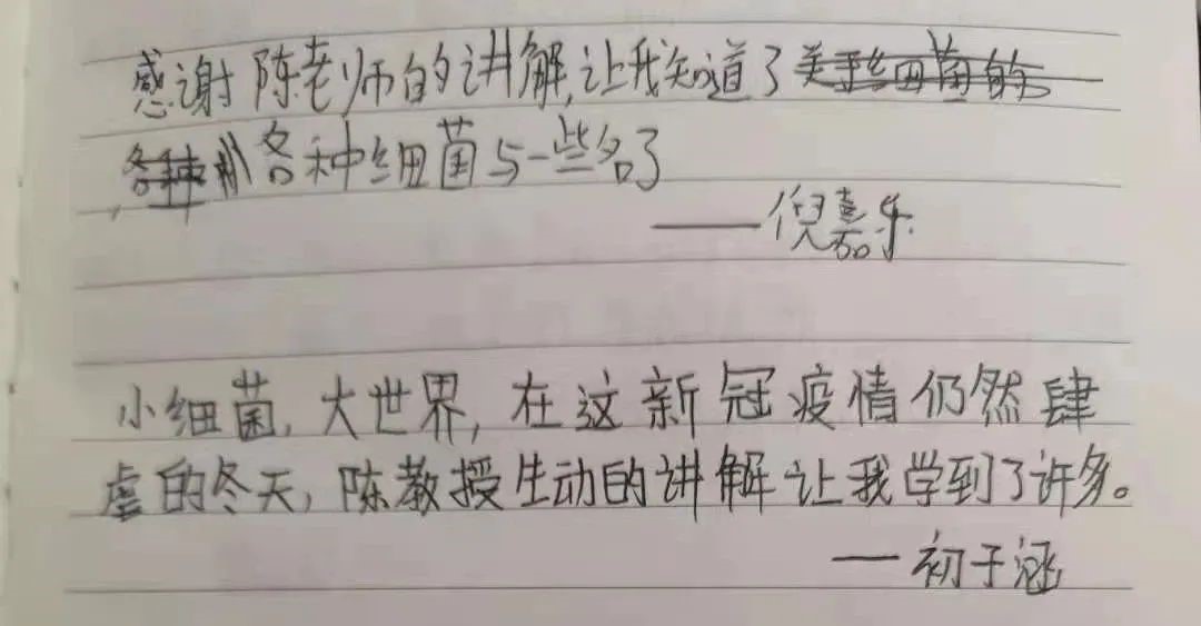 初子涵小朋友的爸爸还作诗一首:“风似刀,发如霜,谈笑风生沐冬阳;小细菌,大课堂,薪火相传筑梦想;少年郎,学巨匠,意气风发云飞扬。感恩陈教授老当益壮,未移白首之心;传道少年,不坠青云之志;待他年,唯愿此地少年接班陈老,为祖国医药事业再添辉煌!”