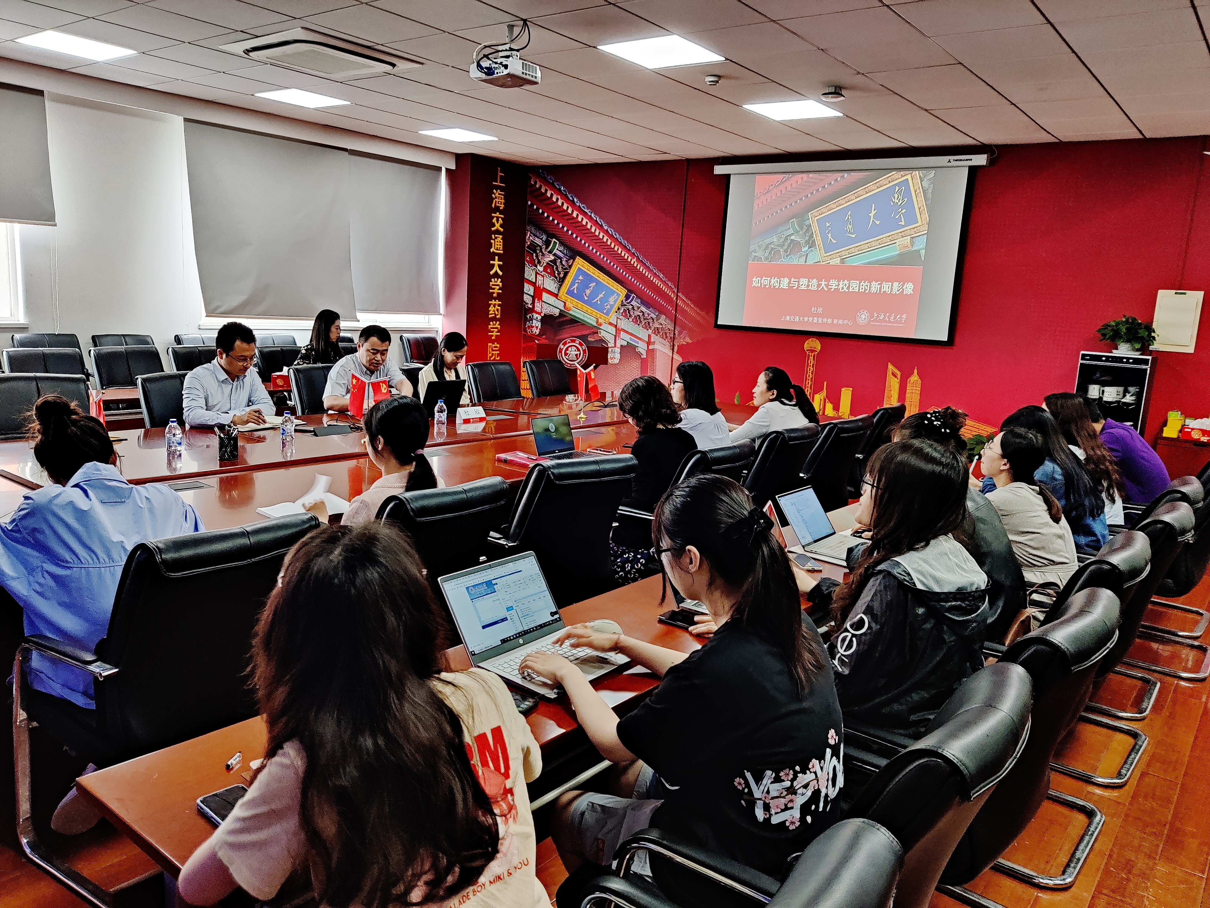 为进一步提高学院师生的新闻摄影能力,5月28日中午,海角网 师生骨干培训班于5-412会议室开展第四次集体学习。校党委宣传部海角网杜欣受邀作《如何构建与塑造大学校园的新闻影像》专题辅导报告,院党委副书记张宝红、叶定剑以及师生骨干代表40余人参加本次活动。活动由叶定剑主持。