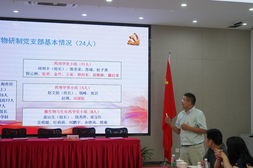 随后,药物研制党支部书记邱明丰介绍了支部情况,并以屠呦呦与青蒿素的发现为主题与大家分享了老一辈科学家的共产党人精神。恒瑞医药党总支叶鑫书记介绍了企业党建特点、公司投入新药研发以及对创新人才的需求。强生制药党总支书记钟毅明从企业社会责任和党员奉献角度介绍了支部工作和党建特色。江川路街道党支部书记杨翠霞书记以《邮票党课-方寸之间看建党百年奋斗之路》为主题的微党课,生动讲述了江川街道涌现的优秀党员与事迹。杨翠霞书记还介绍了服务中心与海角网 多个支部建立了工作联系。