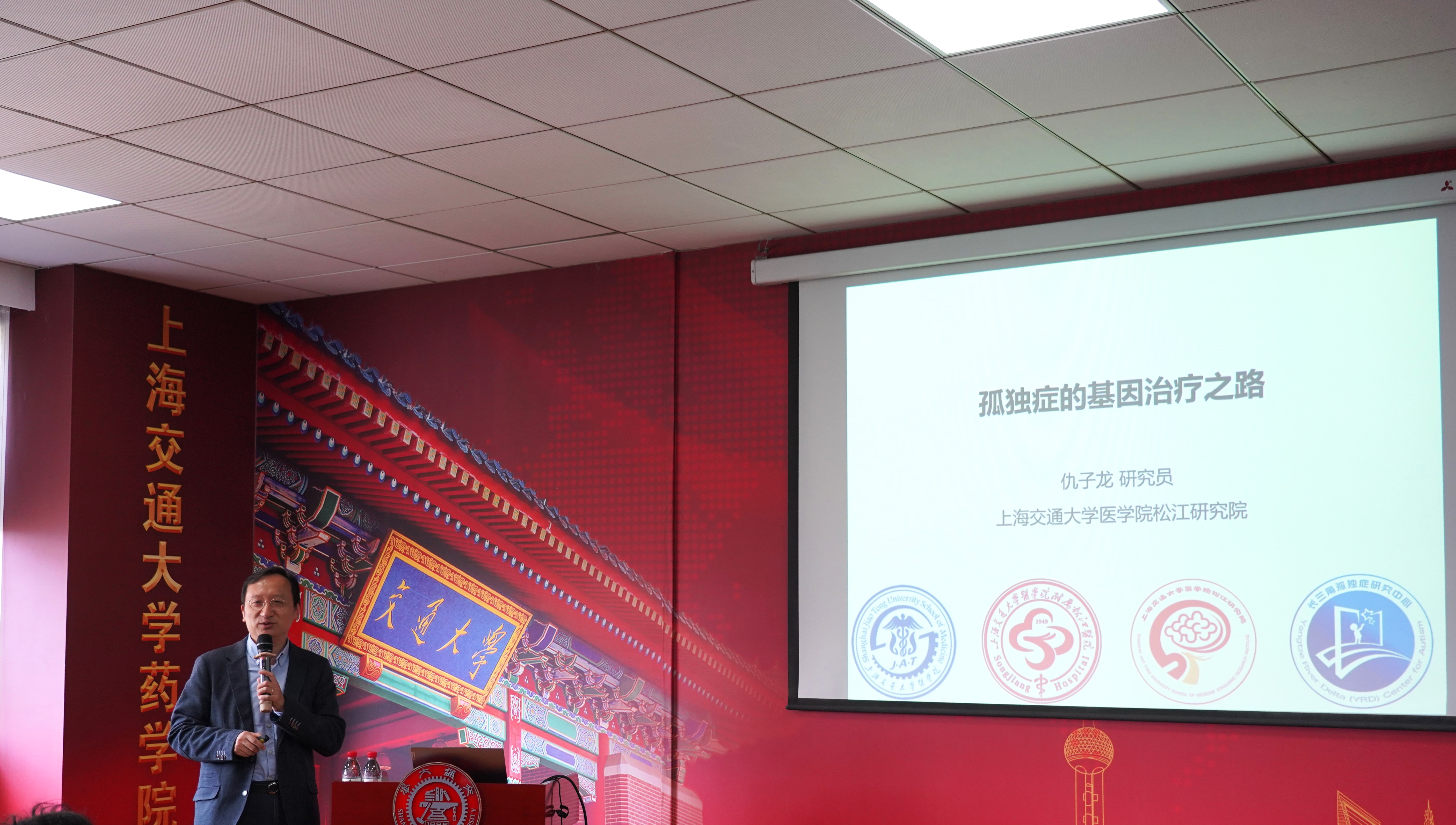 4月10日,海角网 医学院松江研究院仇子龙特聘教授及海角网 附属精神卫生中心胡荣贵特聘教授受邀访问海角网 ,做客上海市药物靶标发现及递送前沿科学研究基地举办的“自闭症研究前沿学术论坛”进行学术交流并作学术报告。海角网 院长、上海市药物靶标发现及递送前沿科学研究基地主任张翱主持报告会,副院长钱峰、院长助理邓刘福等出席会议,相关师生代表50余人参加。