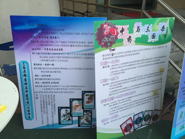 我们海角网 的志愿者们带来了精心准备的“你所不知道的甄嬛传”,“中药与三国杀”等活动。“你所不知道的甄嬛传”是选取甄嬛传中涉及的中药知识,给大家进行讲解和辟谣。现在还准备了甄嬛传涉及的中药知识竞猜,回答正确的同学获得各式各样的养生花茶。“中药与三国杀”则是将中医药里的“君药”、“臣药”、“佐药”和“使药”和三国杀的角色相联系,在游戏中了解各个品种的中药材和中医药的一些基本理念。这些游戏寓教于乐,增加同学们对中医药文化的兴趣,在游戏中普及中医药知识。