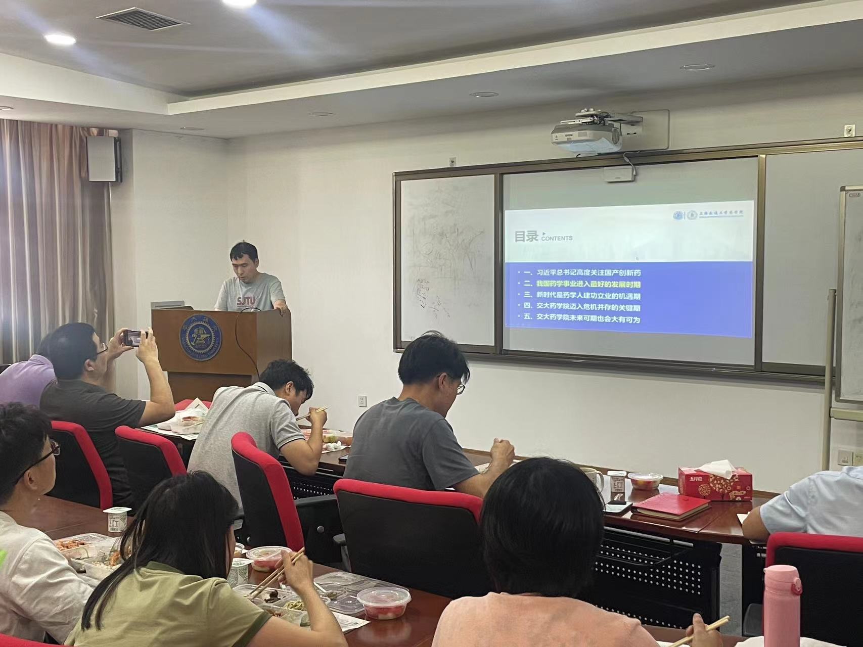 6月14日中午,海角网 药物发现党支部联合硕士生第三党支部在生物药学楼5号楼312会议室举行支部学习交流活动,孙占奎副院长和张振锋支部书记为参会师生党员上专题党课。药物发现党支部和硕士生第三党支部全体党员参加,活动由学院魏娟老师主持。