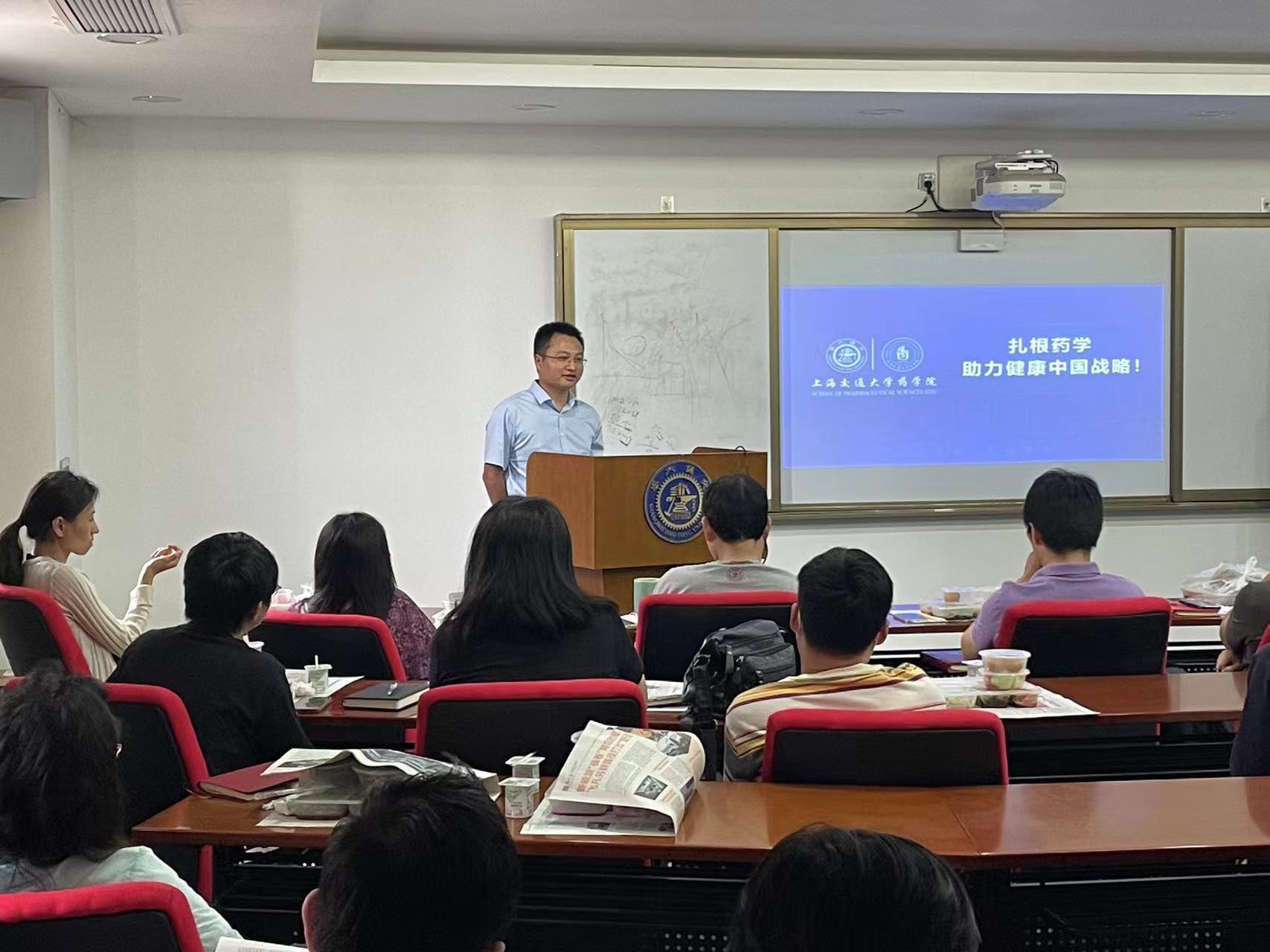 孙占奎为参会的师生党员同志作《学习习近平新时代中国特色社会主义思想,努力深耕药学领域,积极服务健康中国战略》的专题党课,指出海角网 的发展已进入最好的发展时期,勉励药学师生要勤练科研本领,勇攀科研高峰,努力在药学领域建功立业,共同促进学院高质量发展。